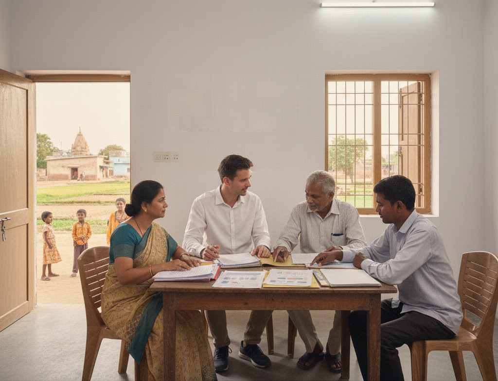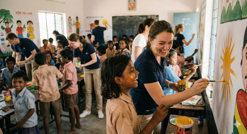 “Connecting your workforce to the heart of India.” We bridge the gap between corporate boardrooms and rural communities. Our curated volunteering programs allow your employees to contribute their time and skills meaningfully—be it through mentorship, skill-sharing, or field labor. These immersive experiences foster a deeper sense of purpose, boost team morale, and align your workforce with your company’s social mission.